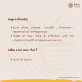 the ghee in the lip balm has all properties to keep you lip supple. the purest beeswax used creates the exact barrier you need the ghee to lock in the lips. the orange flavour makes it fun & tasty