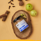 ingredients: triphala, licorice, cardamom, cloves and prosopis juliflora. triphala - haritaki, bibhitaki and amla together works as anti-caries activity, root canal irrigant, anti-microbial and anti-oxidant. licorice - keeps teeth clean and heals sore teeth and gums. licorice root contains a compound called glycyrrhizin, which helps reduce tooth decay. cardamom - cardamom helps eliminate bad odour and has anti-inflammatory properties.