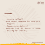 danta druda sweet tooth powder: the taste based tooth powders, the unique specialty of kalyashastra is also now so sweet. perfect for little babies who will be brushing for the 1st time. It’s sweet. It’s awesome.