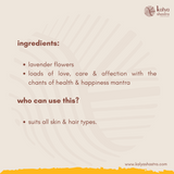 ingredients: lavender flowers. loads of love, care & affection with the chants of health & happiness mantra.